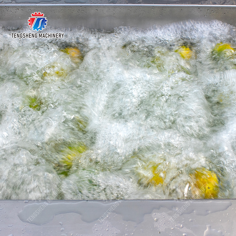 Cette machine est une installation de fabrication favorable à l'environnement avec trois méthodes de nettoyage : bulles d'air, pulvérisation surfante et à haute pression de circulation ; l'ozone a les fonctions de la stérilisation, de la désintoxication, et de la dégradation des pesticides résiduels. Il peut nettoyer les fruits dans toutes les directions avec des effets exceptionnels.